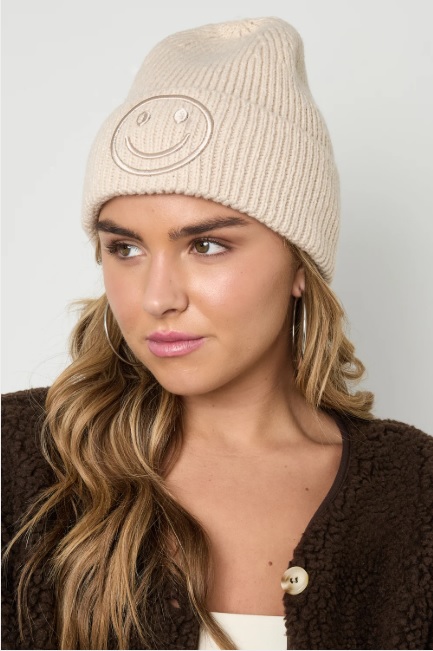 Ce bonnet combine style et confort, idéal pour les journées froides, les sorties décontractées ou comme accessoire tendance. Son motif sourire apporte une touche joyeuse à toutes vos tenues.